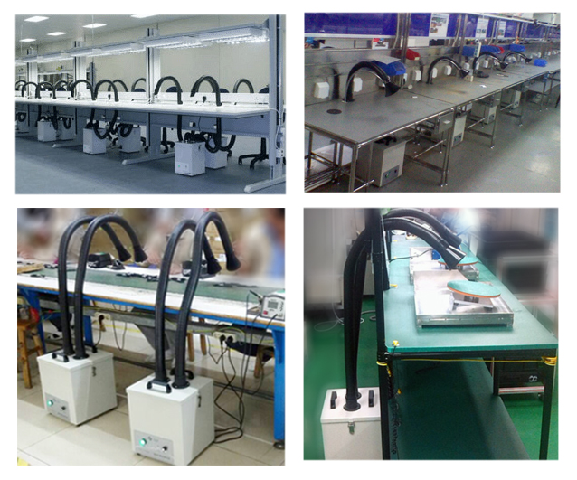 生產線手工焊錫煙霧處理目前常用的三種方式是: 1、吸煙管外排。室內安裝排煙管系統,然后通過大功率抽風機直接排到室外。 其缺點是需要鋪設繁雜的管道系統;風機耗電非常大;抽風機功率不夠大時因管路長廢氣易回流,排煙不徹底;空調車間冷氣流失大;不能隨意移動,工位更改不方便;污染環境。 2、單工位安裝吸煙儀。吸煙儀也就是簡單的抽風扇,加了層簡單活性炭網。 其缺點是:凈化效率低,<30%;吸收不完全,剩余煙霧會分散到車間,暫時起到安撫員工的作用,不能解決實際問題。 3、使用焊錫煙塵凈化機。 煙霧經過抽煙管進入設備內部過濾系凈化,過濾系統由物理和化學多層次過濾系統構成,凈化率高達9.99%,自帶萬向吸煙手臂,無需鋪設管道,凈化后達室內排放標準,無需外排。沒有排風引起的室內負壓影響,更利于保持室內潔凈度。 前兩種方式,前期投入比較少,但是沒有從根本解決焊煙危害人體及環境的問題,而且能耗大,長期費用高。安裝焊錫煙霧凈化機,前期投入相對要多一些,但是其本身能耗低,耗損費用少,環保健康,不會受到員工及周圍人群投訴,企業不會因環保問題被查改,提升企業形象,增加員工歸屬感。因此越來越多的企業響應環保號召,開始安裝使用焊錫煙塵凈化機。